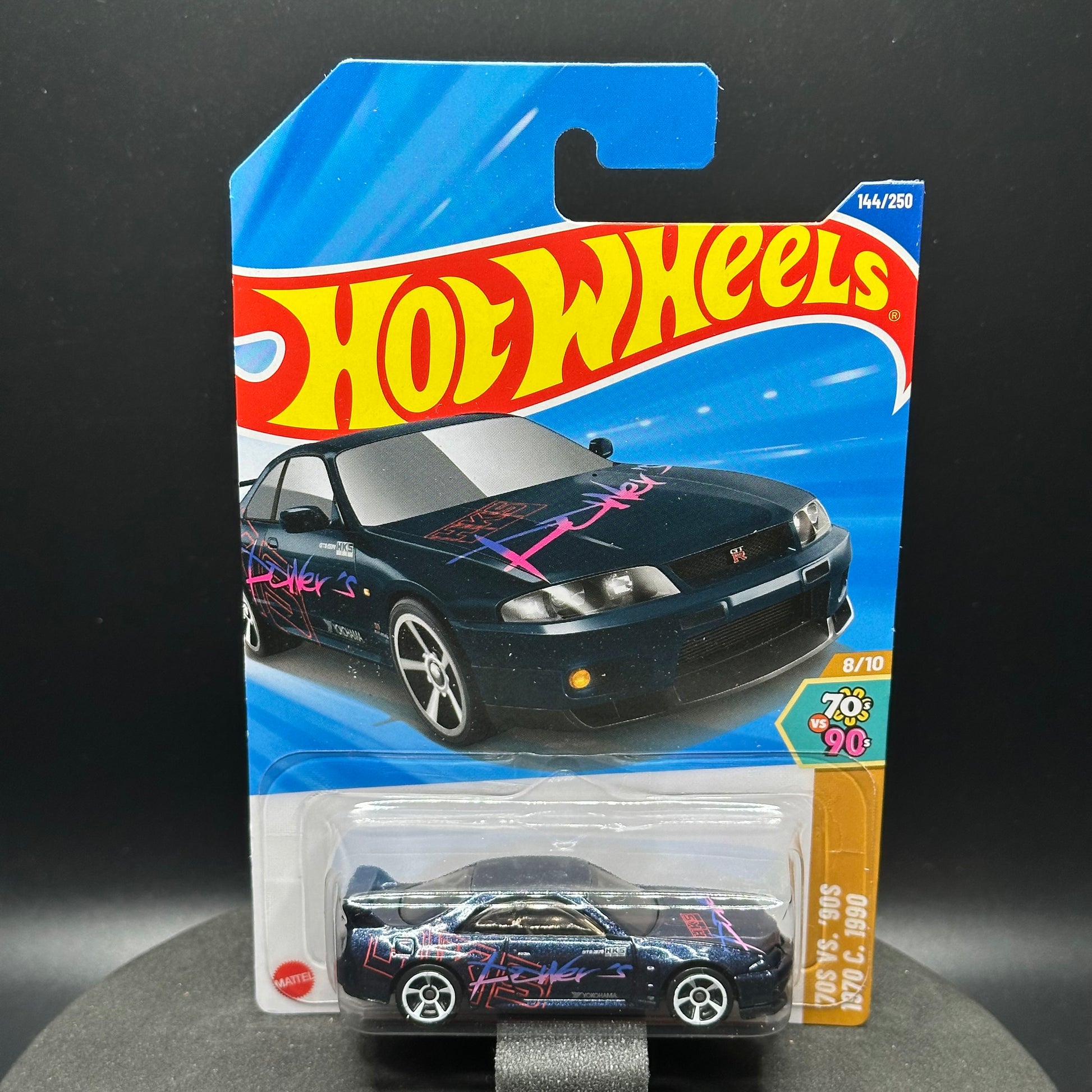 Hot Wheels Nissan Skyline GTR R33 in dark blue with the HKS design. There are multiple available and you might not get the exact one in the picture. They are all in good condition but may have slightly soft corners or lightly dented edges. All Hot Wheels will be individually wrapped in bubble wrap and shipped in a box for added protection.