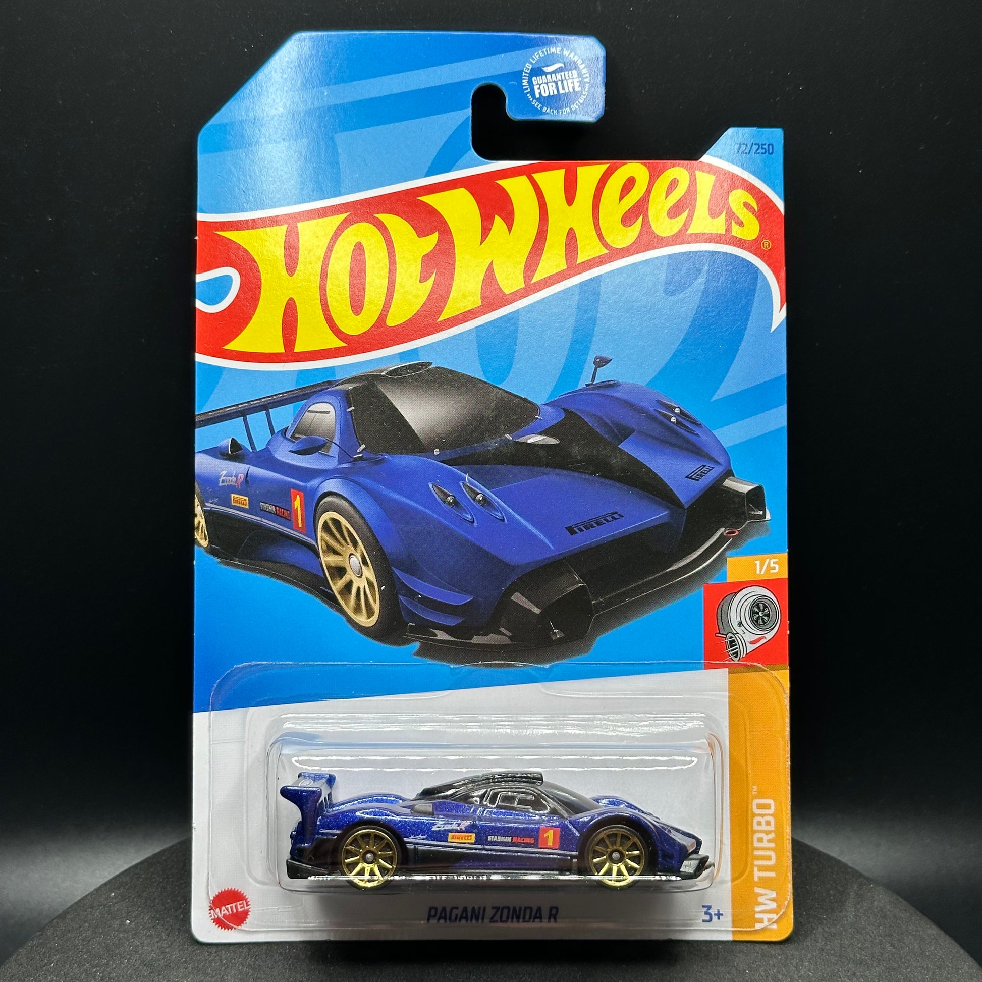 Hot Wheels Pagani Zonda R in blue. There are multiple available and you might not get the exact one in the picture. They are all in good condition but may have slightly soft corners or lightly dented edges. All Hot Wheels will be individually wrapped in bubble wrap and shipped in a box for added protection.