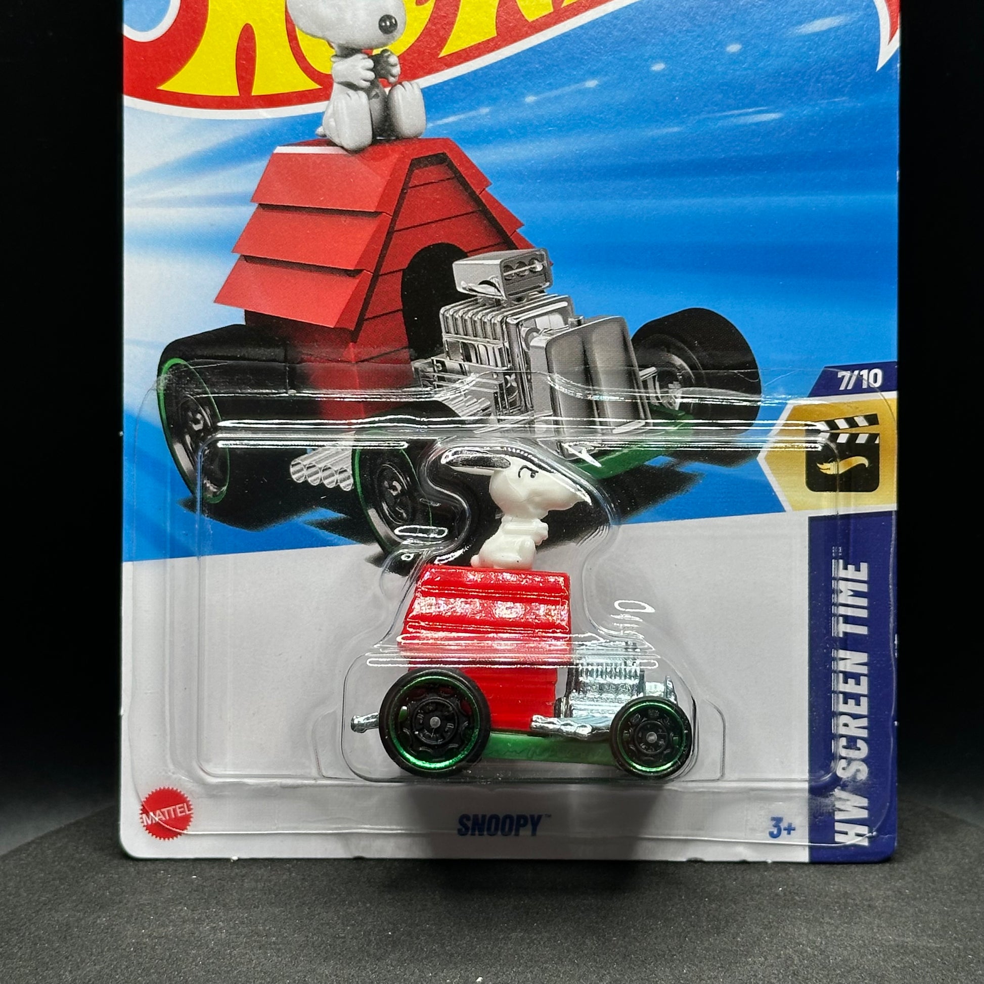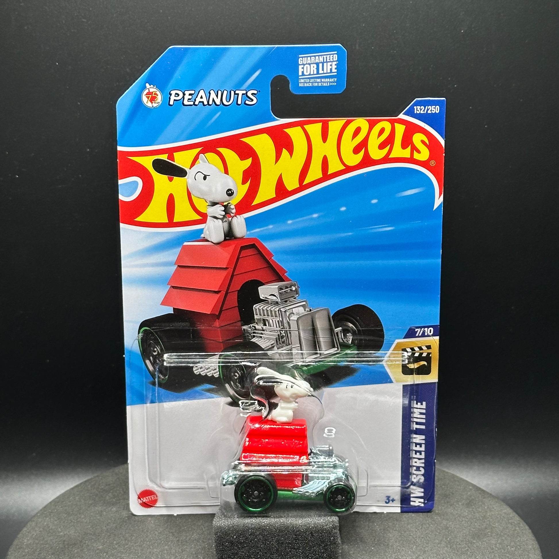 Hot Wheels Peanust Snoopy with green outline on the wheels. There are multiple available and you might not get the exact one in the picture. They are all in good condition but may have slightly soft corners or lightly dented edges. All Hot Wheels will be individually wrapped in bubble wrap and shipped in a box for added protection.