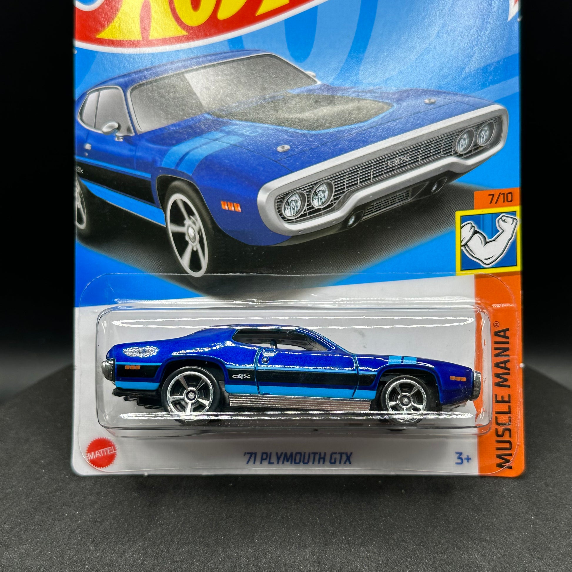 Hot Wheels ‘71 Plymouth GTX in blue. There are multiple available and you might not get the exact one in the picture. They are all in good condition. All Hot Wheels will be wrapped in bubble wrap and shipped in a box for added protection.