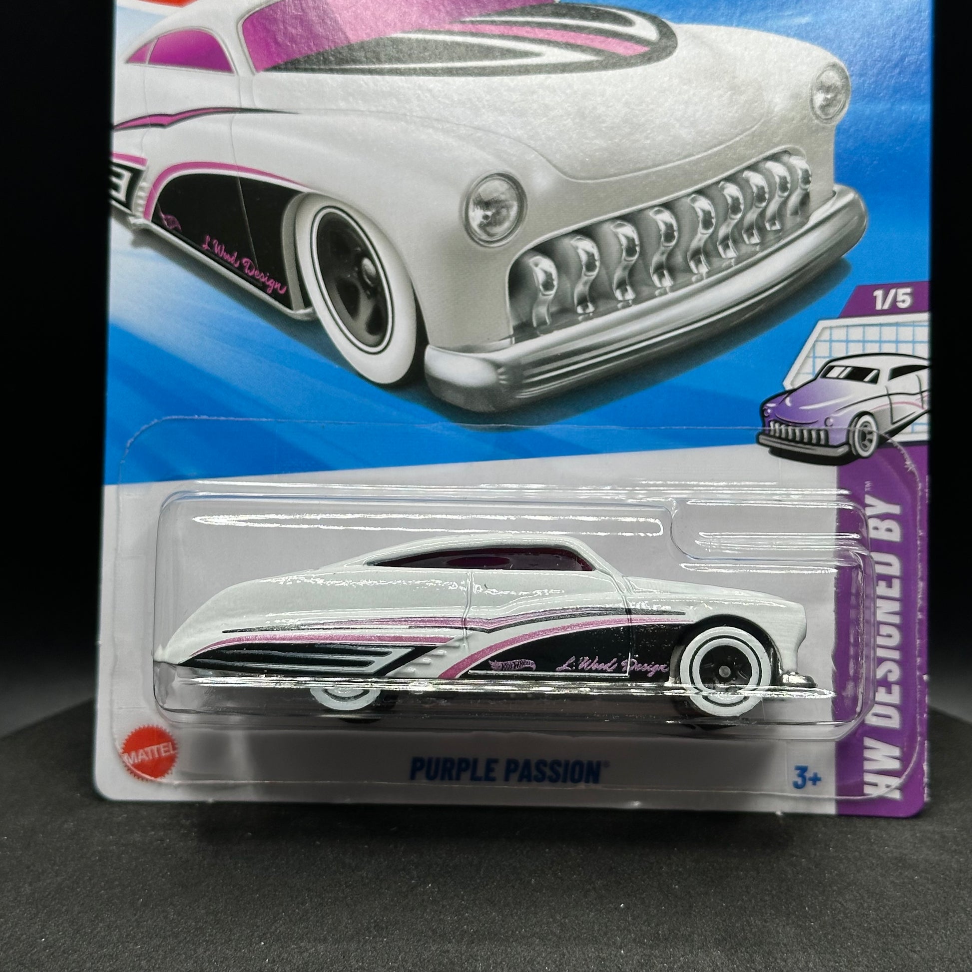 Hot Wheels Purple Passion in white. There are multiple available and you might not get the exact one in the picture. They are all in good condition but may have slightly soft corners or lightly dented edges. All Hot Wheels will be individually wrapped in bubble wrap and shipped in a box for added protection.