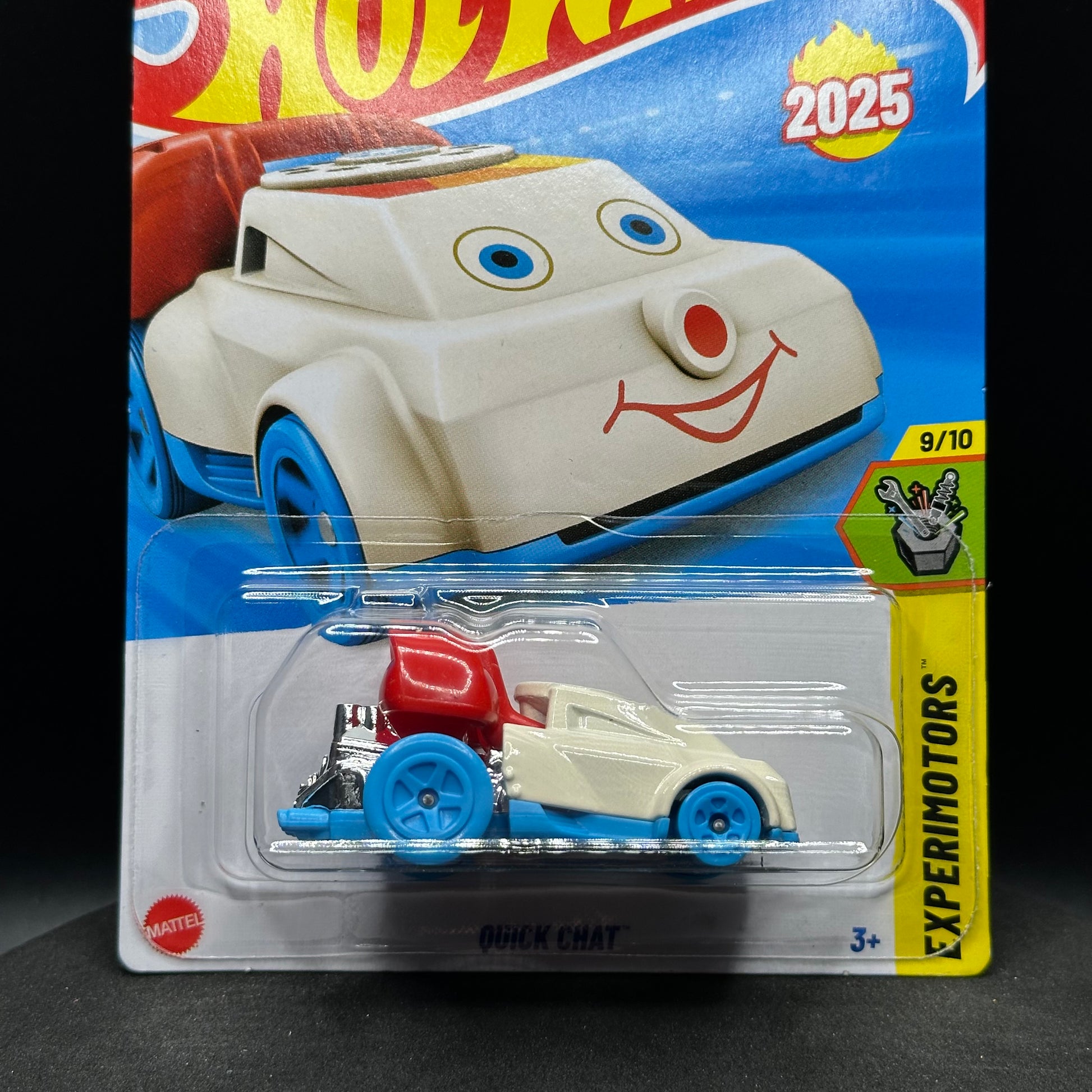 Hot Wheels Quick Chat in white. There are multiple available and you might not get the exact one in the picture. They are all in good condition but may have slightly soft corners or lightly dented edges. All Hot Wheels will be individually wrapped in bubble wrap and shipped in a box for added protection.