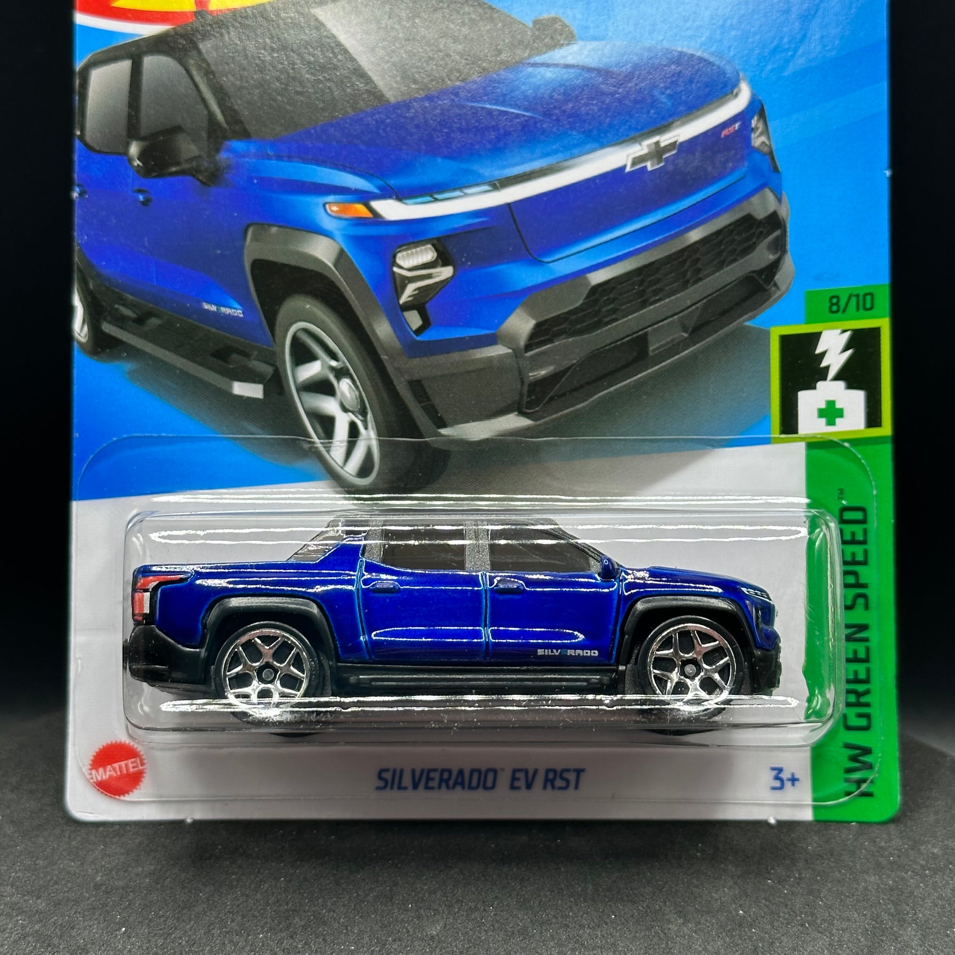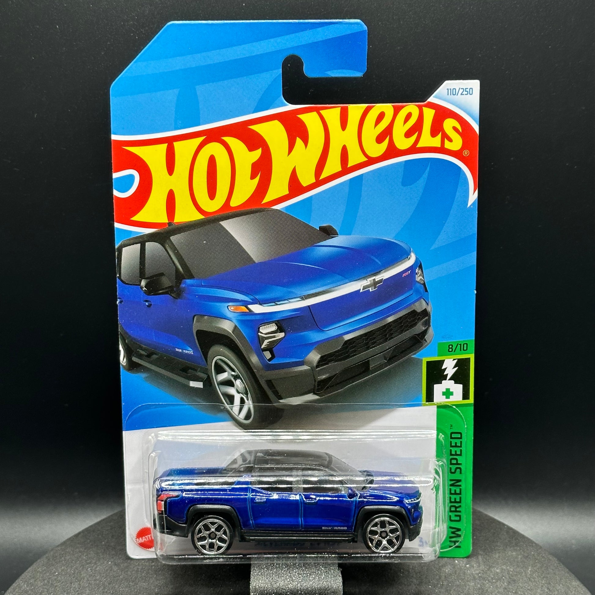 Hot Wheels Chevy Silverado EV RST in blue. There are multiple available and you might not get the exact one in the picture. They are all in good condition but may have slightly soft corners. All Hot Wheels will be wrapped in bubble wrap and shipped in a box for added protection.