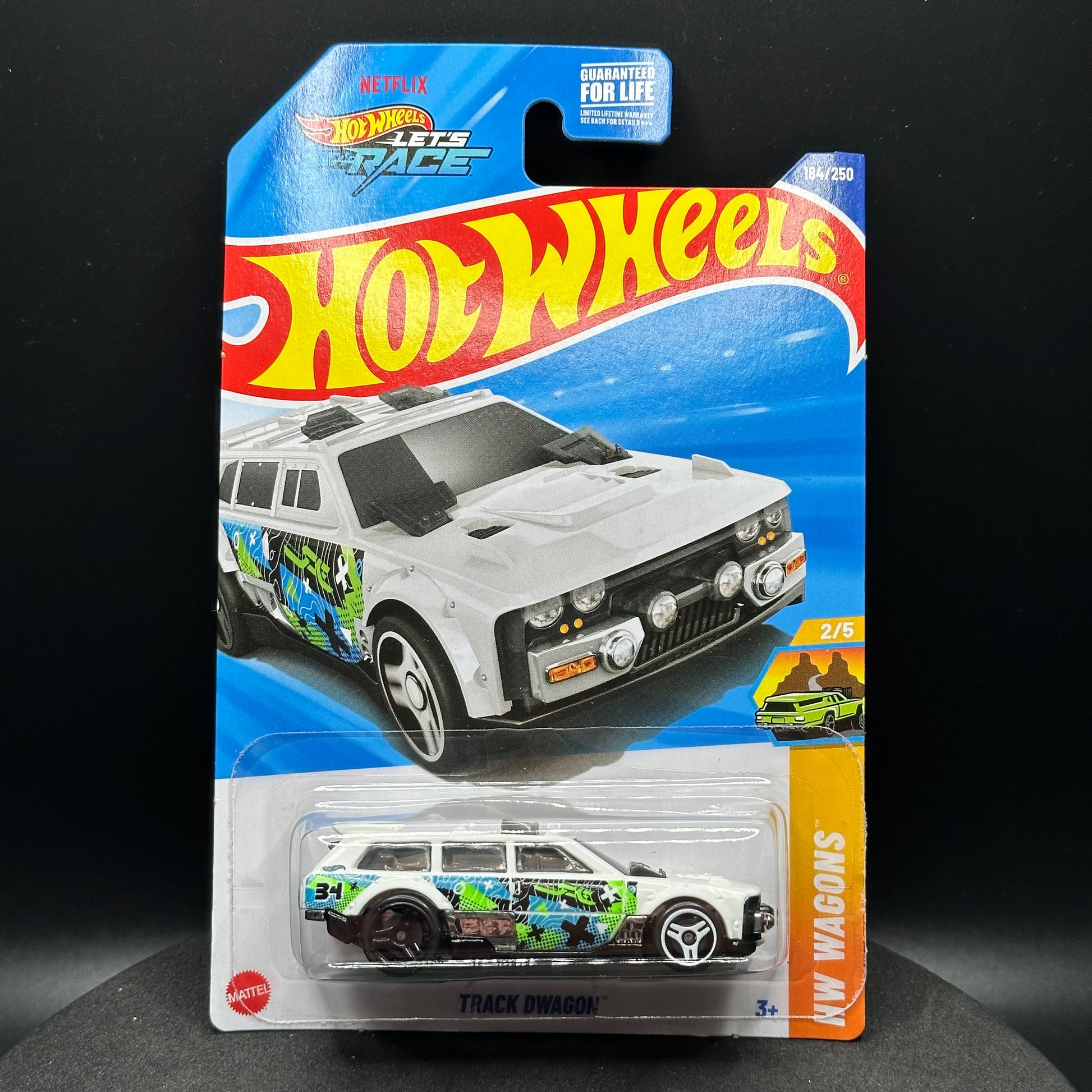 Hot Wheels Track Dwagon in white. There are multiple available and you might not get the exact one in the picture. They are all in good condition but may have slightly soft corners or lightly dented edges. All Hot Wheels will be individually wrapped in bubble wrap and shipped in a box for added protection.