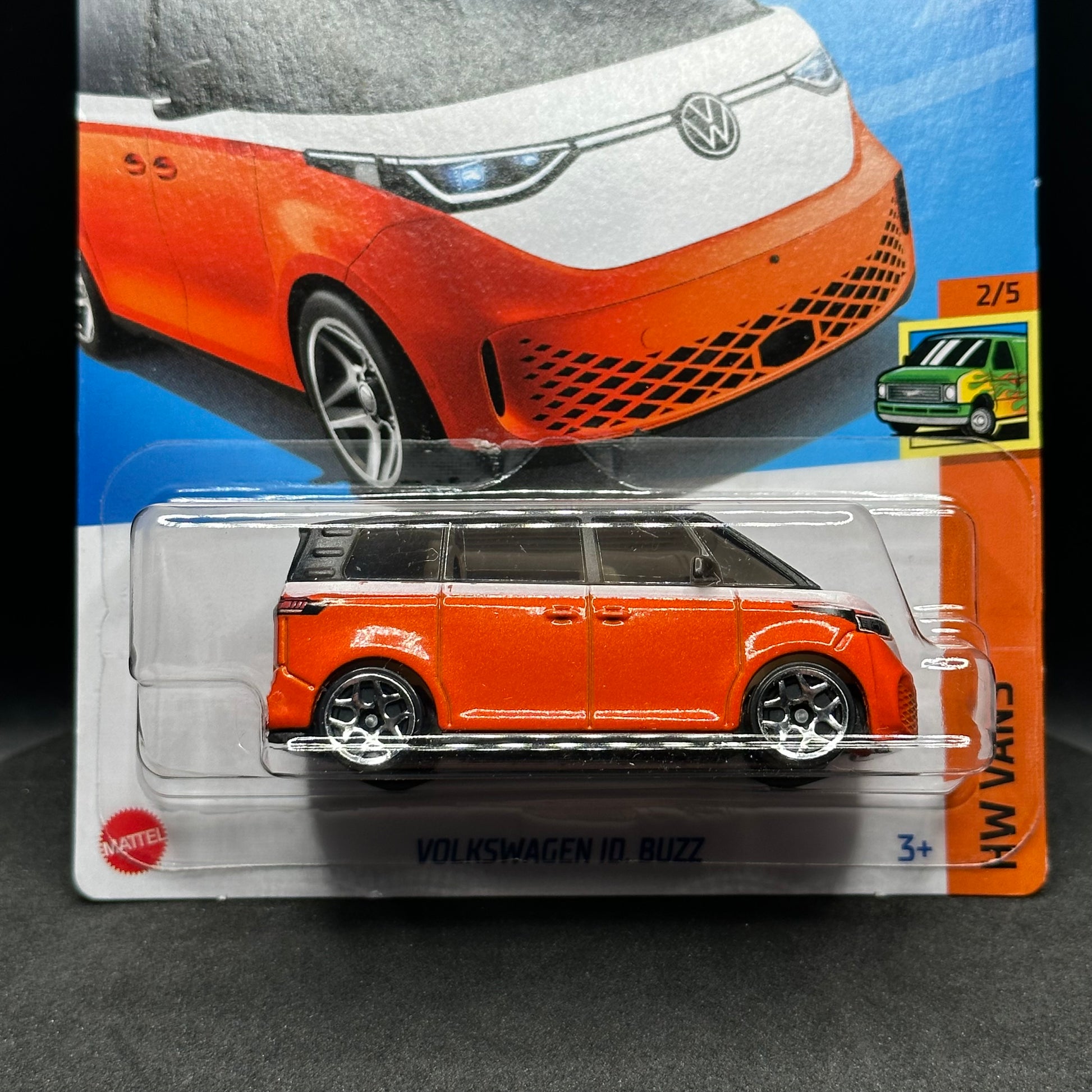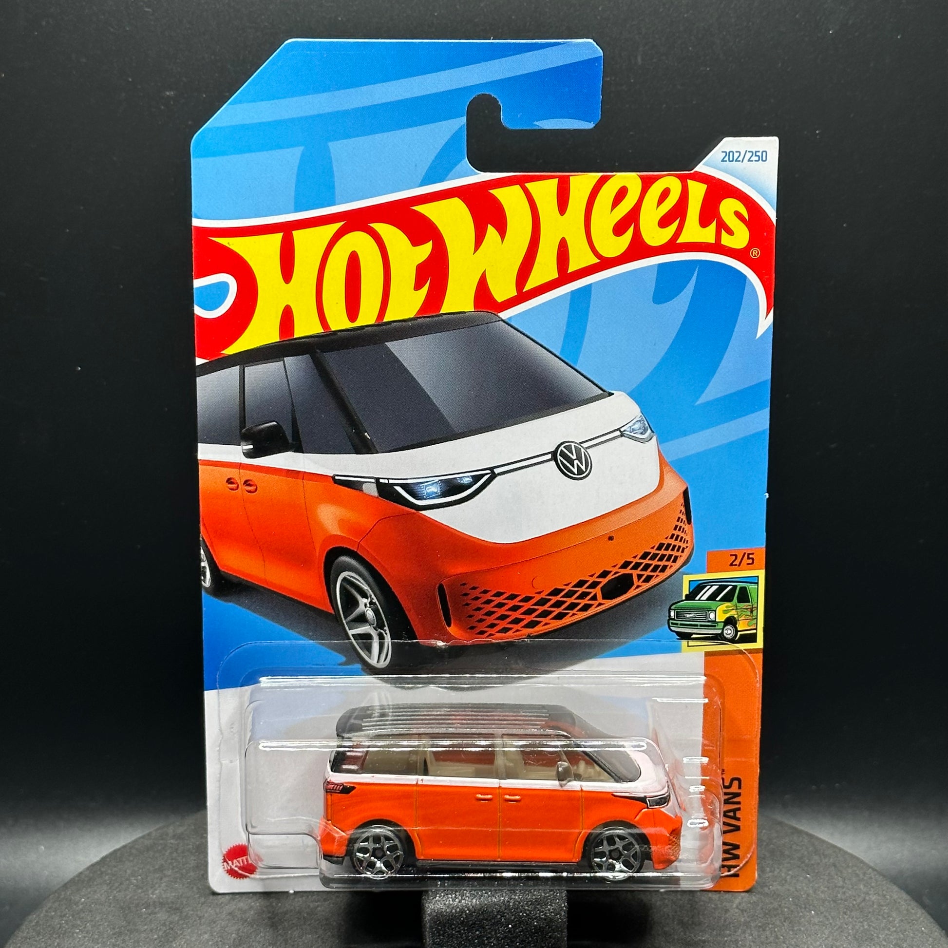 Hot Wheels Volkswagen ID Buzz in orange. There are multiple available and you might not get the exact one in the picture. They are all in good condition but may have slightly soft corners or lightly dented edges. All Hot Wheels will be individually wrapped in bubble wrap and shipped in a box for added protection.