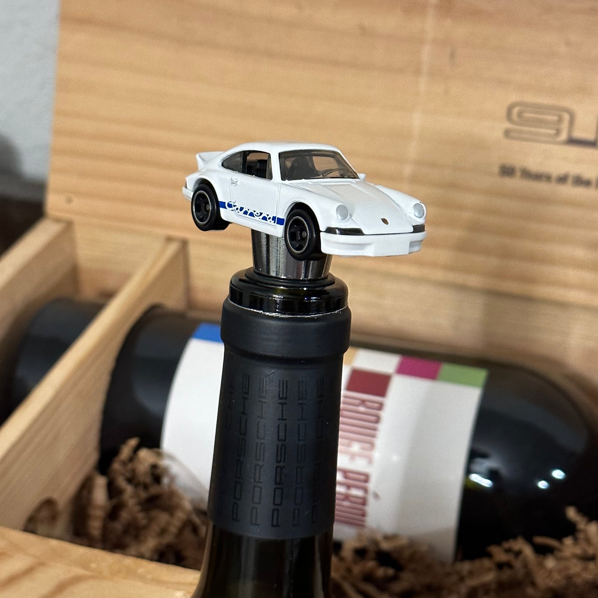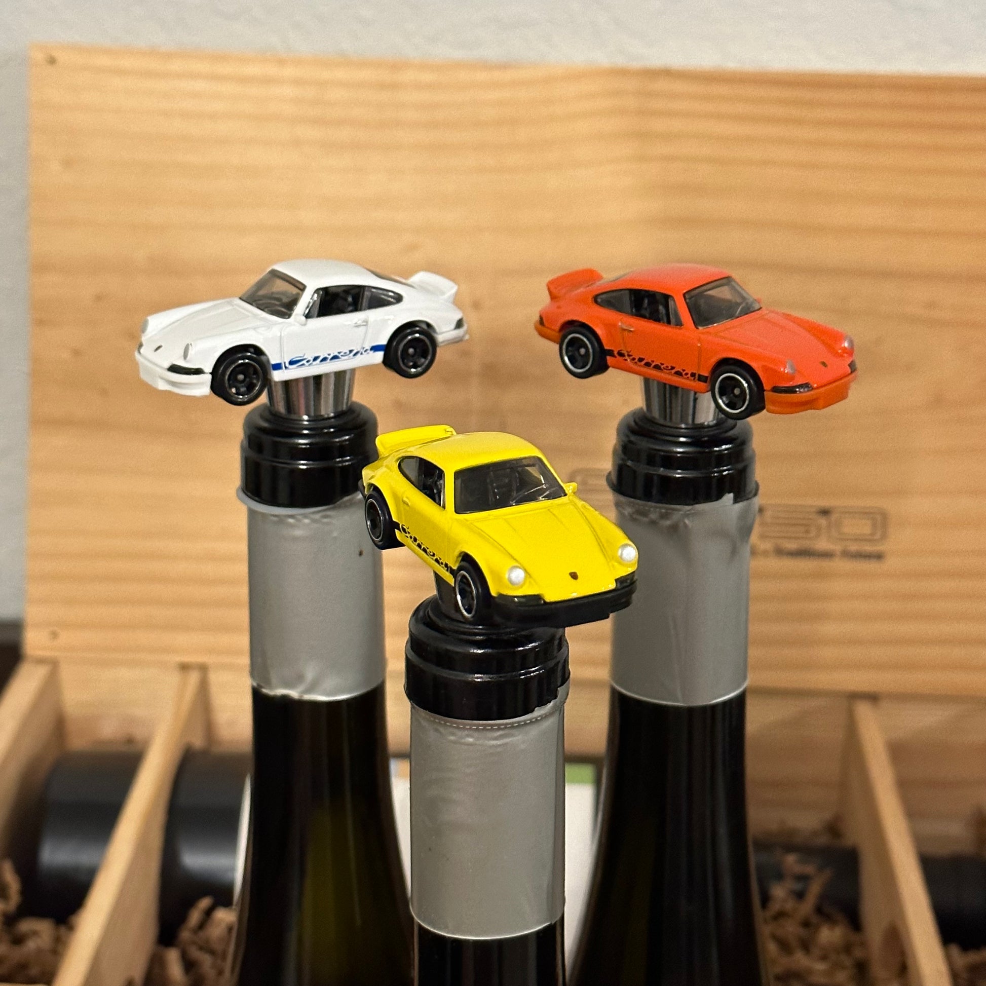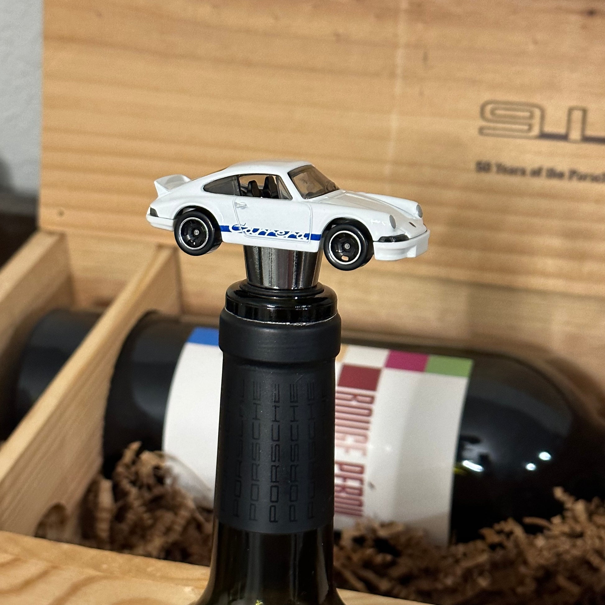 Porsche wine bottle stopper is topped with a beautiful 1/64 scale, diecast metal Porsche with some plastic pieces. Perfect for any event with wine. Classy and bold with different color Porsche cars to choose from. They are packaged with care in a velvet bag and in their own box.