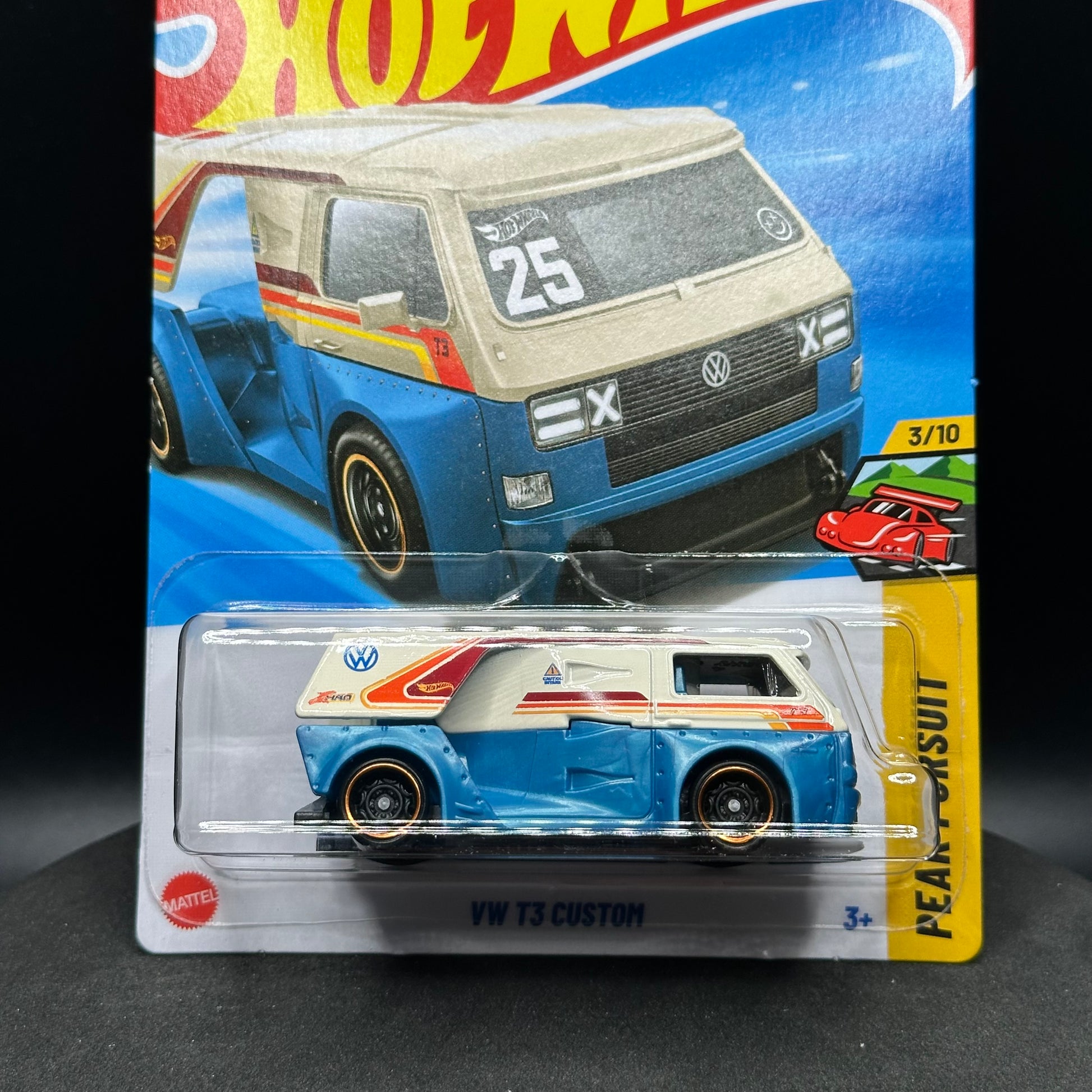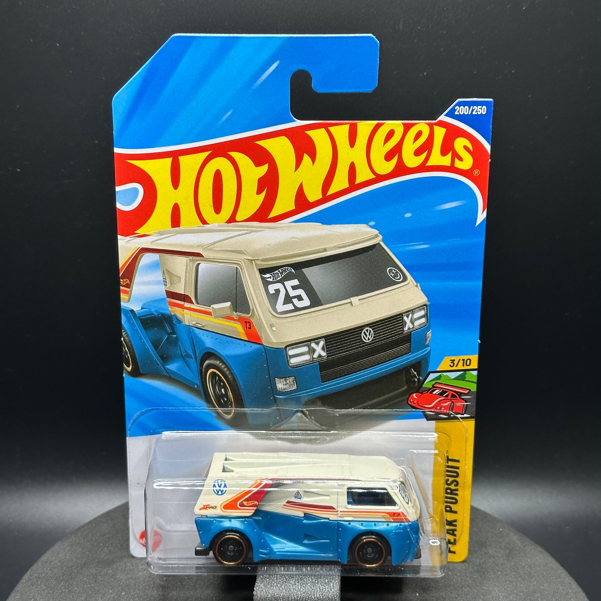 Hot Wheels Volkswagen T3 Custom in tan and blue. There are multiple available and you might not get the exact one in the picture. They are all in good condition but may have slightly soft corners or lightly dented edges. All Hot Wheels will be individually wrapped in bubble wrap and shipped in a box for added protection.